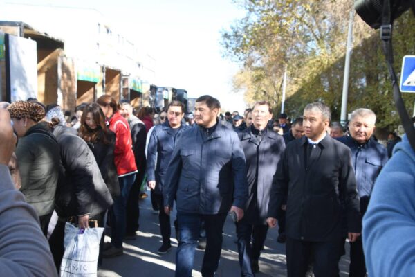 Қазалы ауданының жәрмеңкесіне аймақ басшысы Нұрлыбек Машбекұлы арнайы келіп, аудан шаруаларының ұсынған өнімдерімен танысты. Аудан әкімі Алмасбек Есмаханов аймақ басшысы мен жәрмеңкеге арнайы келген зиялы қауым өкілдеріне, қонақтарға мұндағы барлық өнімдердің тұрғындарға нарықтағыдан төмен бағамен босатылып жатқанын жеткізді.